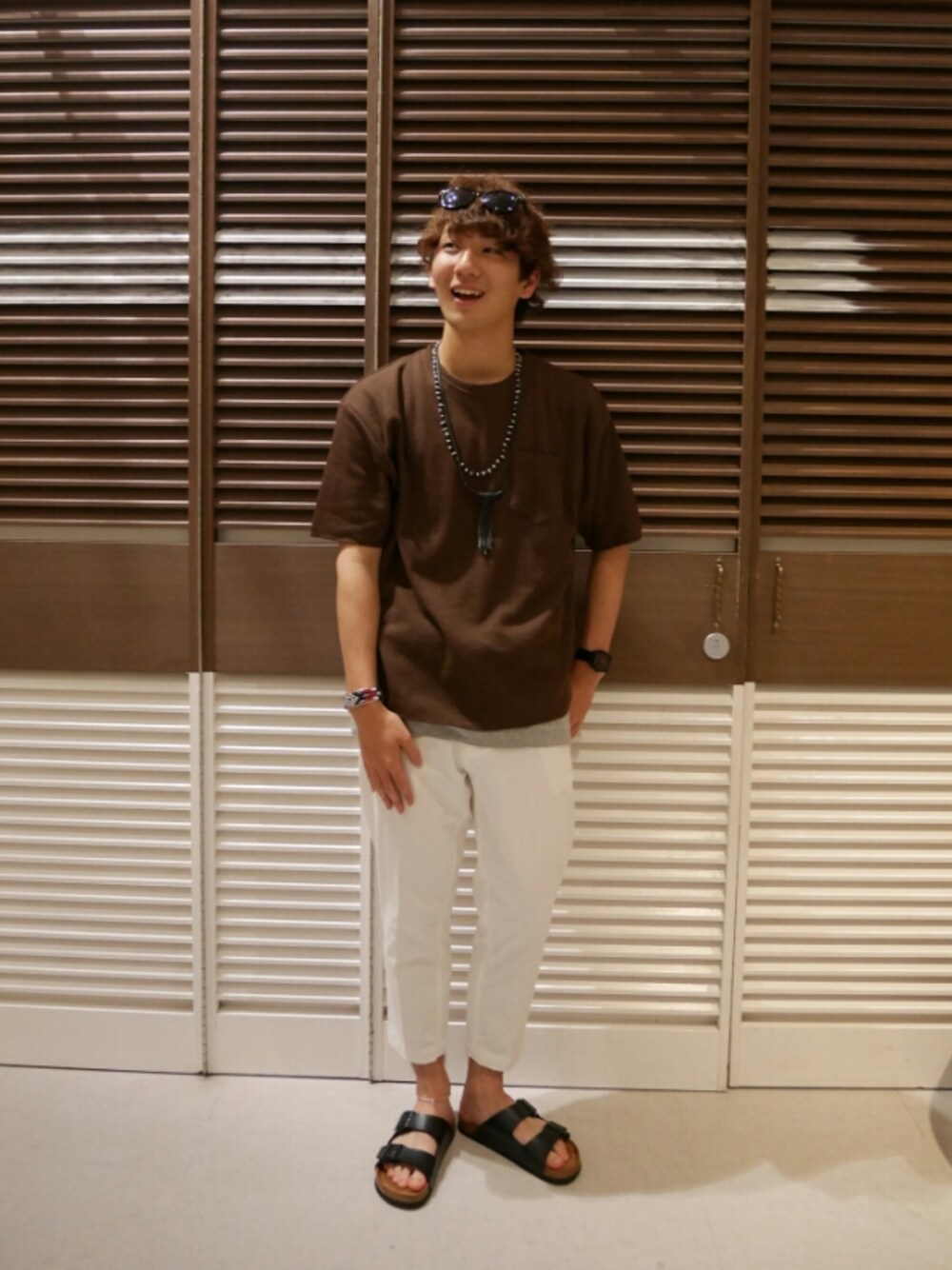 こんにちは! とうとううちのクーラーが稼働し始めました😁 仕事から帰って来てクーラーのついた部屋で寝るのは快適です😪💤💤 さて今回はトレンドのオーバーTシャツを使ったコーディネートです! オーバーTシャツは空気も通りやすいので涼しいです❗ またシルエットが隠れるので体の気になるところも隠れます(*・∀・*)ノ そんなTシャツは珍しいブラウンを選んでみました! パンツを白にすることでよりインパクトは残りやすくなってます😌 ポイントとしては、スッキリとテーパードにすることで体が細く見えるようになってるところです😘 よかったら真似してください(*´ー`*)