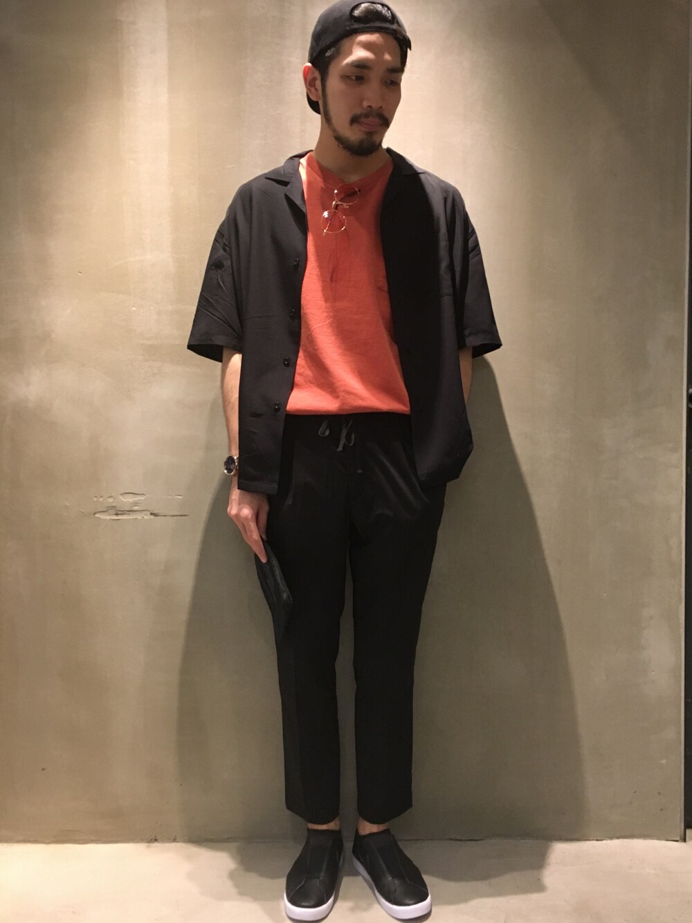 更新が滞っていて申し訳ありませんでした。 こんにちは! いつのまにか夏本番になっておりますね。 暑そうな真っ黒に包まれてみました。 非常に季節感がないのですが中の色次第で色々な方向に持っていけるのでやはり組みやすいですよね! 小物には少し気を使い季節感を見せています! 是非ご参考にして頂ければと思います。