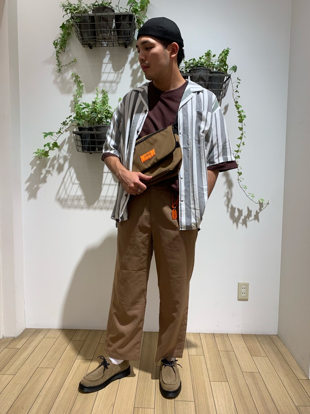 こんにちは! 今回はベージュ×ブラウンコーデです! 流行りに乗っかってみました! ベージュ系統のカラーは同系色であっても合わせやすく、雰囲気が出るのでめっちゃおススメです! ご抵抗のある方は、白や黒のベーシックカラーを入れ緩和するといいと思います!! 是非みなさんも今年は渋いコーデで夏を満喫してみませんか!?