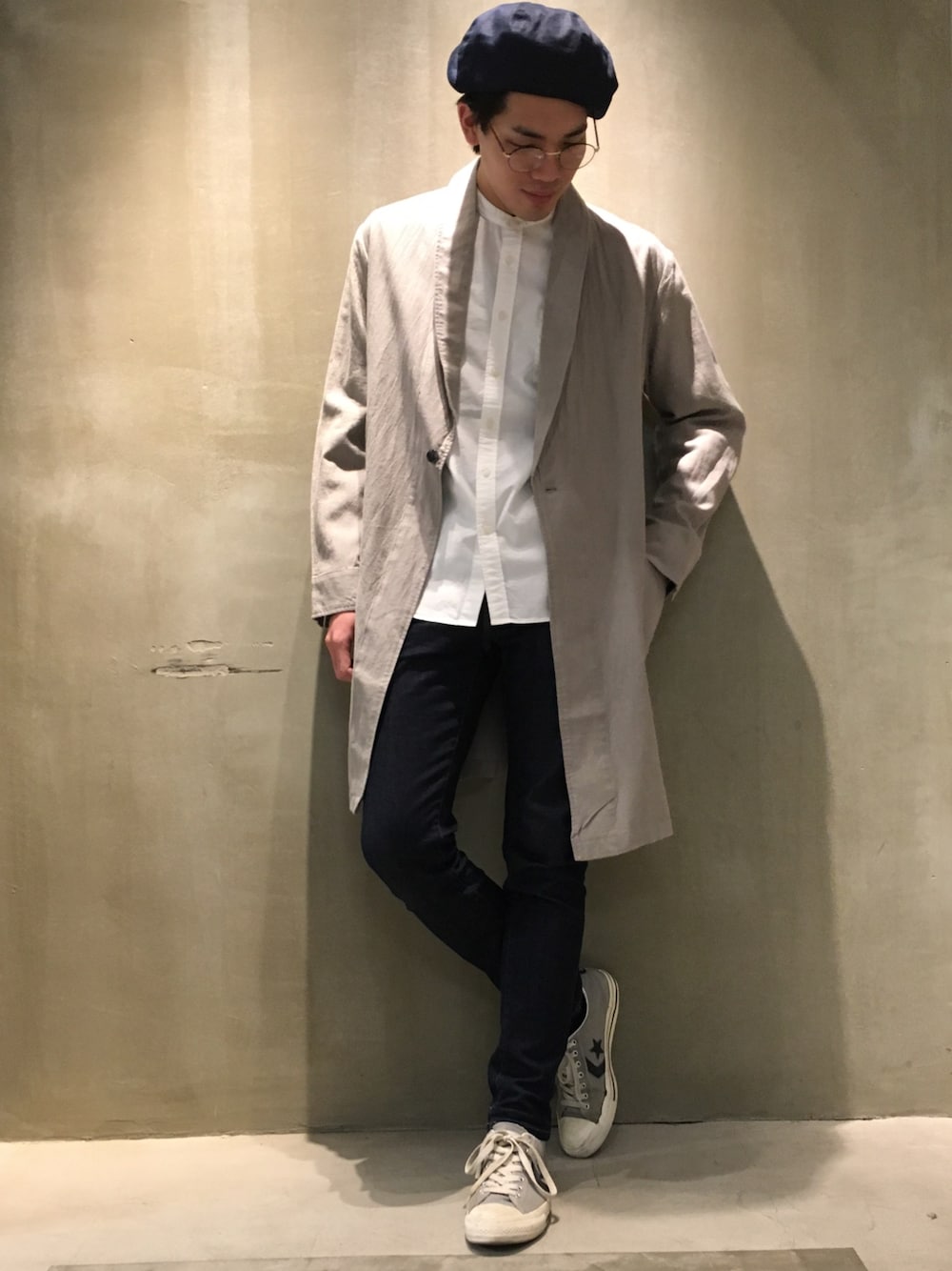 こんにちは! もう三月ともあってがっつり春のコーディネートになっております。 綺麗な印象のガウンを、バンドカラーのシャツで合わせることで更にスッキリとさせてみました。 どちらも使い回しの効くアイテムなので是非ご参考にしてみて下さい。