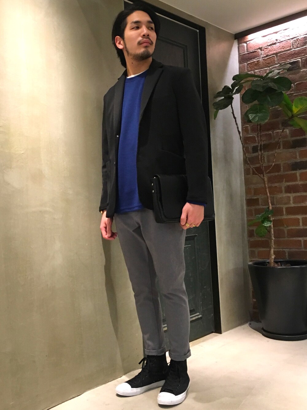 こんにちは! 今回は大人カジュアルな感じの春コーデです! 落ち着いたカラーに差し色で青を入れてみました。 ジャケットとタックパンツでフォーマルになりすぎないよう、カットソーとスニーカーにしてみました! 春はジャケットを羽織る機会が多くなると思うので、ぜひご参考にしてみて下さい!