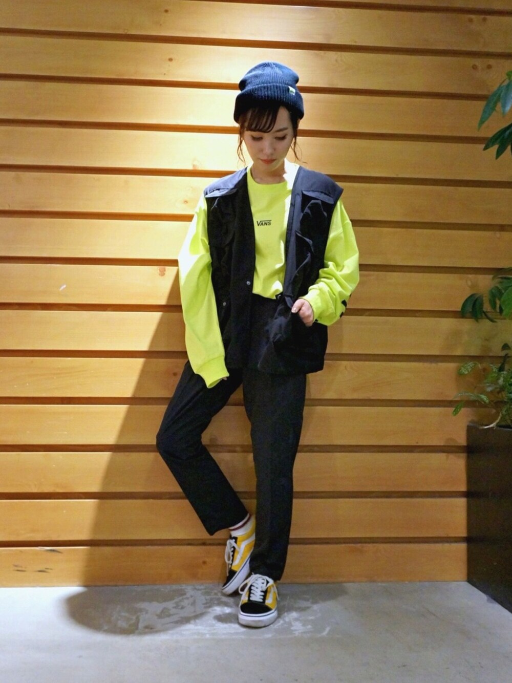 こんにちは! 今回は、 私の大好きなベストを使って 今年らしいスポーツMIXコーデにしてみました! VANSのTシャツがかなりのビックシルエットなので、ベストの緩さと相性抜群◎ ベストの素材感に近いスラックスで統一感を出し 足元はスッキリ目にしてあげるとバランスがよいです☺️