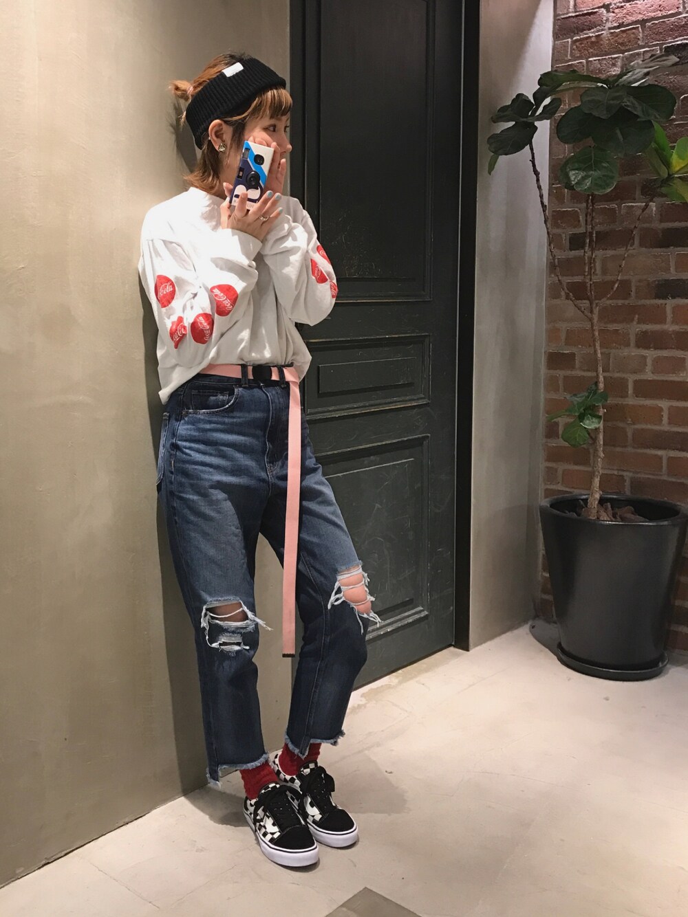 とっても久しぶりの更新になります。前田です! 長らく更新できずにおりました。。 というのも、、 私事ですが 去年の12月より お世話になった新宿ルミネエスト店から 池袋PARCO店に移動になっておりました! 更新が途絶えてしまい、申し訳ありません。 フォローしてくださっている皆様が そのままし続けてくださっていることに 前田は感動しております★ ありがとうございます!! そしてこれからまた元気に 男性も女性も参考になるコーディネートを目指して 載せて行きますので見てあげてください! 宜しくお願い致します! _______________________ 復活 第1弾のコーディネートはこちら! 袖プリントのコカコーラT + ロングガチャベルト 個性的且つ、春らしいカラーリングのコーディネート にまとめてみました☆ ● コカコーラとコラボ!袖プリントTシャツ こちらは赤いロゴのタイプと シンプルな文字ロゴタイプがございます! カラーもホワイトとブラックの二色ご用意してます。 シンプルにいくも良し、アクセントにするも良し... これからだと半袖Tシャツと合わせても素敵ですね!! 袖にはリブかあるため、一枚着でも成り立ちます♪ ● GIロングベルト こちらはなんと7色展開になっております☆ ( ホワイト、ブラック、ライトブルー、ピンク ベージュ、パープル、オリーブ ) とても長いので自分好みに切って使ってあげるのを オススメします(^ ^)! 私は縦のラインを強調したかったのと ビックサイズのトップスが多いので長めにしてます! ●写ルンです 懐かしの写ルンです が30周年を迎えられたという事で RAGEBLUEオリジナルパッケージでコラボしました! 写ルンですの凄いところは スマホで加工して出すレトロ感を 撮るだけで出してしまうという!☆ しかも今は現像だけでなく QRコードを読むだけでスマホに写真を保存できちゃうんです!! そしてなんと!! 店頭では RBのアイテム(どれでも)+写ルンです のセットでお買い上げで 1000円OFFに つまり、写ルンです本体価格が600円+税に! これは春のお出かけのお供に大抜擢ですね! 使い切った後もお部屋のインテリアにできます。 他にも写ルンですのお得な情報盛りだくさん! 気になる方は是非店頭スタッフor公式サイトまで! 今回は長くなってしまったのでこの辺で、、 最後まで閲覧ありがとうございました!