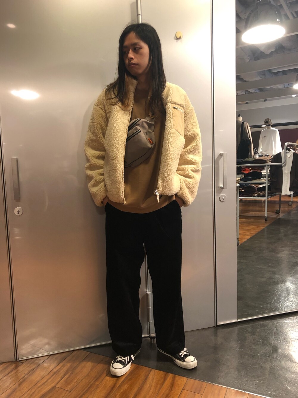 いつもご覧頂きありがとうございます! レイジブルーキャナルシティ博多店の藤瀬です! 今回は人気のボアを使ったコーディネートです!やはりボア秋冬に使いたい素材のひとつですよね、くわえるだけで温かみのある着こなしにもなるので秋冬らしさバッチリです! 今年らしくキャメルのインナーと合わせてグラデーションっぽくしているのもポイントですね! よかったら参考にしてみてください!