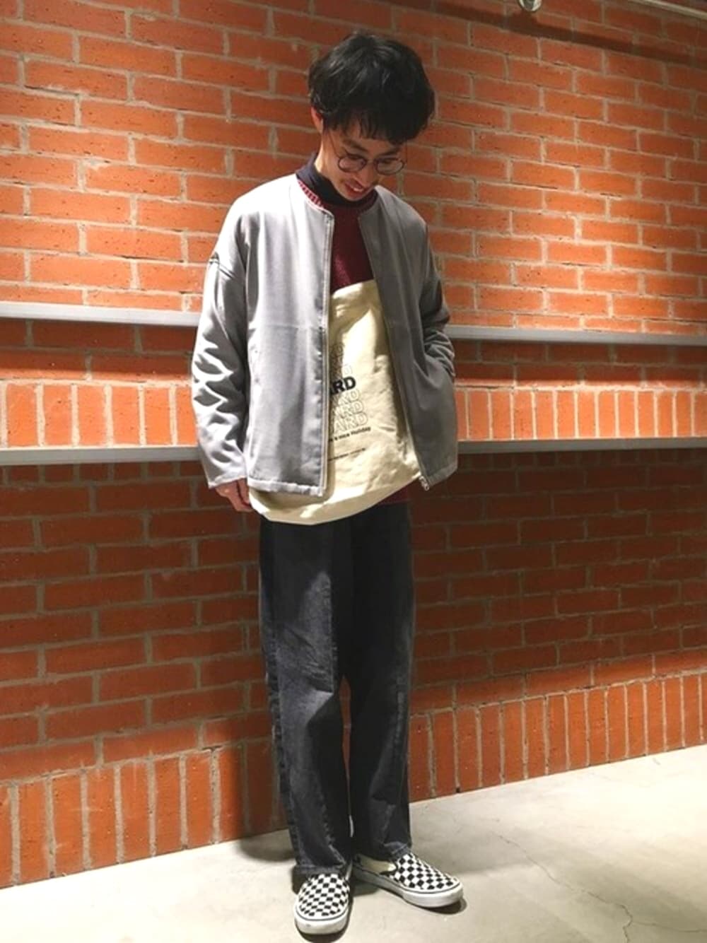 八木のニット/セーター「アクリル/コットン編地切り替えニットクルー/748368」を使ったコーディネート