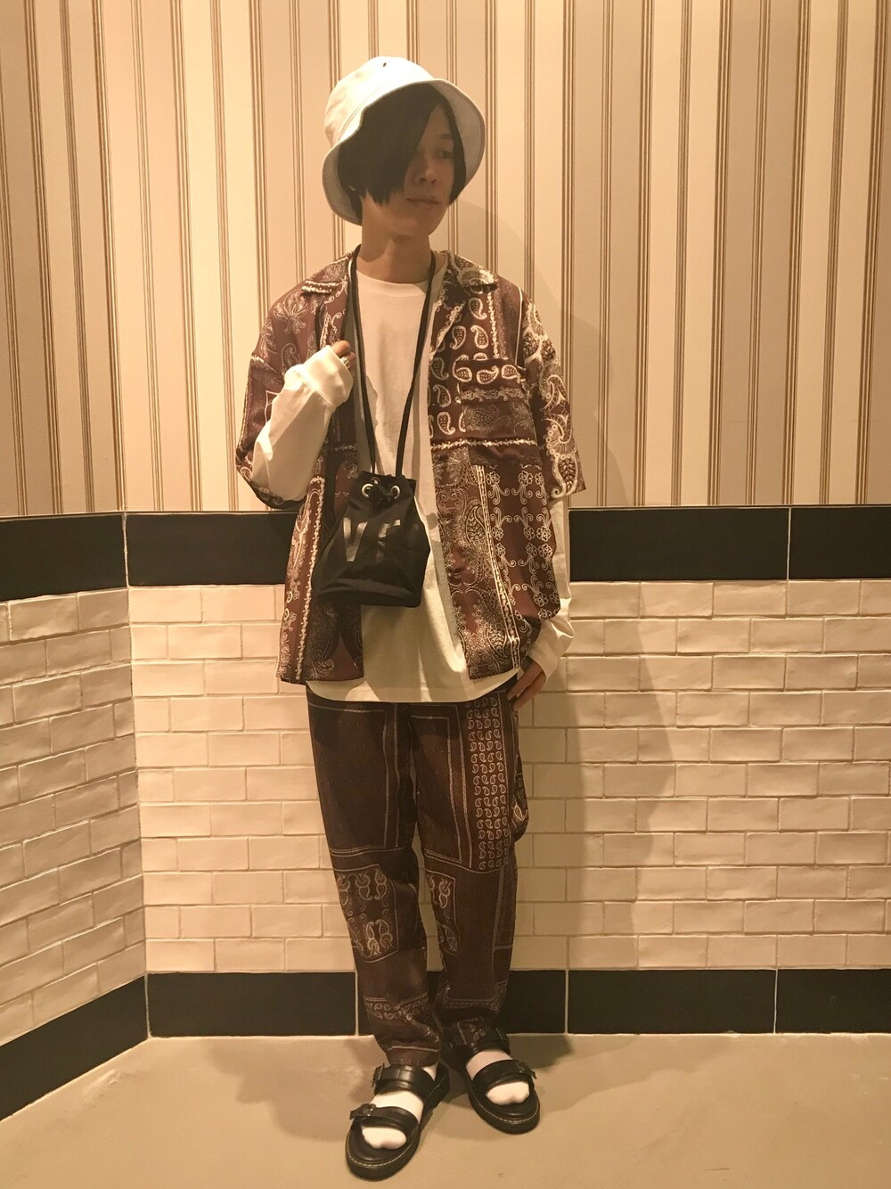バンダナ柄のアイテムをセットアップ風に合わせたスタイルです インパクトのある柄on柄のスタイルでも、白のロンTを合わせることでだいぶ印象が変わります! 今季らしい巾着バッグやサンダルでさらにリラックス感をプラスです 是非、ご参考までに^ ^