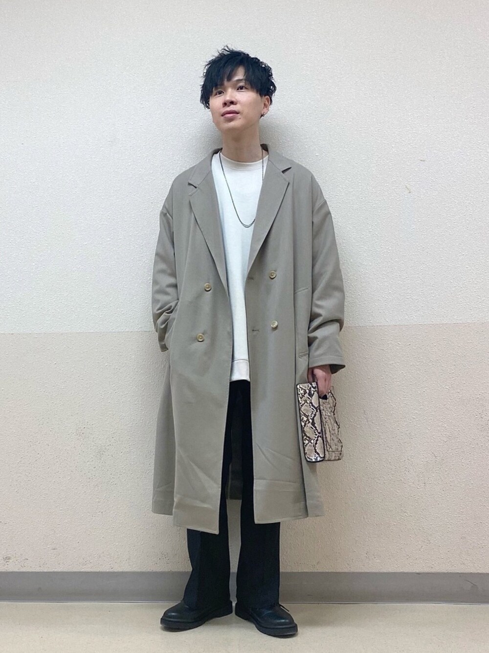 ダブルチェスターコートとフレアパンツを合わせて、モードにスタイリングしてみました! レーヨン混素材でドレープ感のあるコートはシャツ感覚で羽織れて、着心地がかなり楽です○ 是非、ご参考までに(^^)