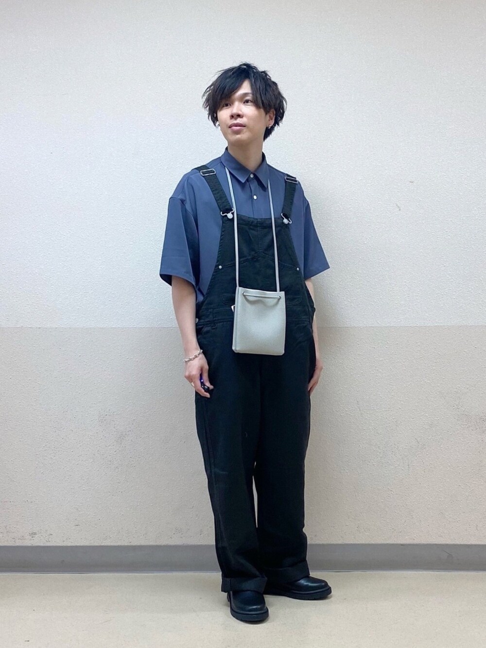 夏のオーバーオールスタイル ワークでカジュアルな印象のオーバーオールですが、ポリ素材のツルッとしたシャツとレザー系のアイテムと合わせてキレイめに着こなしてみました! 是非、ご参考までに(^^)