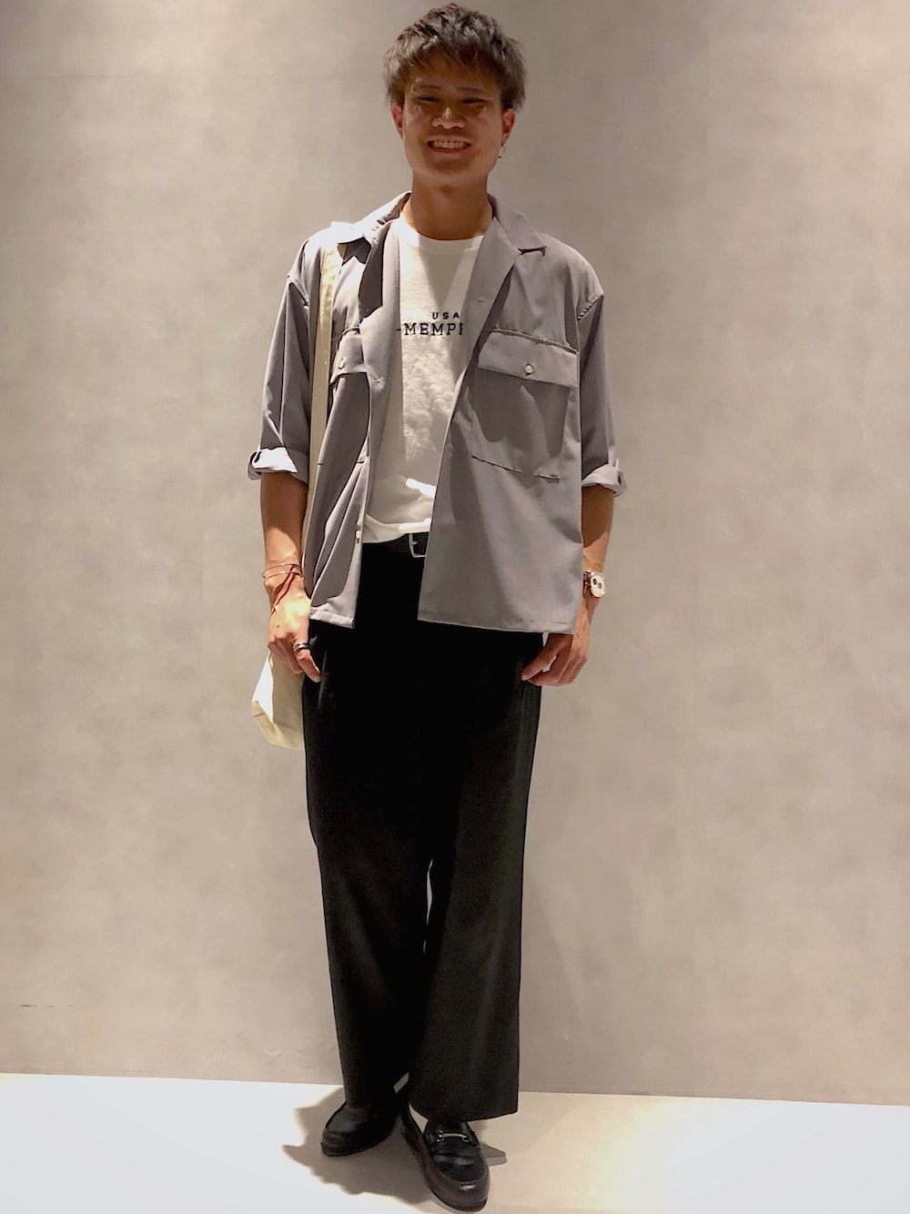 こんにちは! RAGEBLUE イオンモール甲府昭和のかつざわです! 最近暑くなってきたので 今回は夏に向けたキレイめコーデにしました! パンツが黒なので色味が重くならないように、シャツとインナーはグレーと白の軽めの色に、またインナーをタックインすることでワイドパンツを引き立てました! ぜひご参考に!!