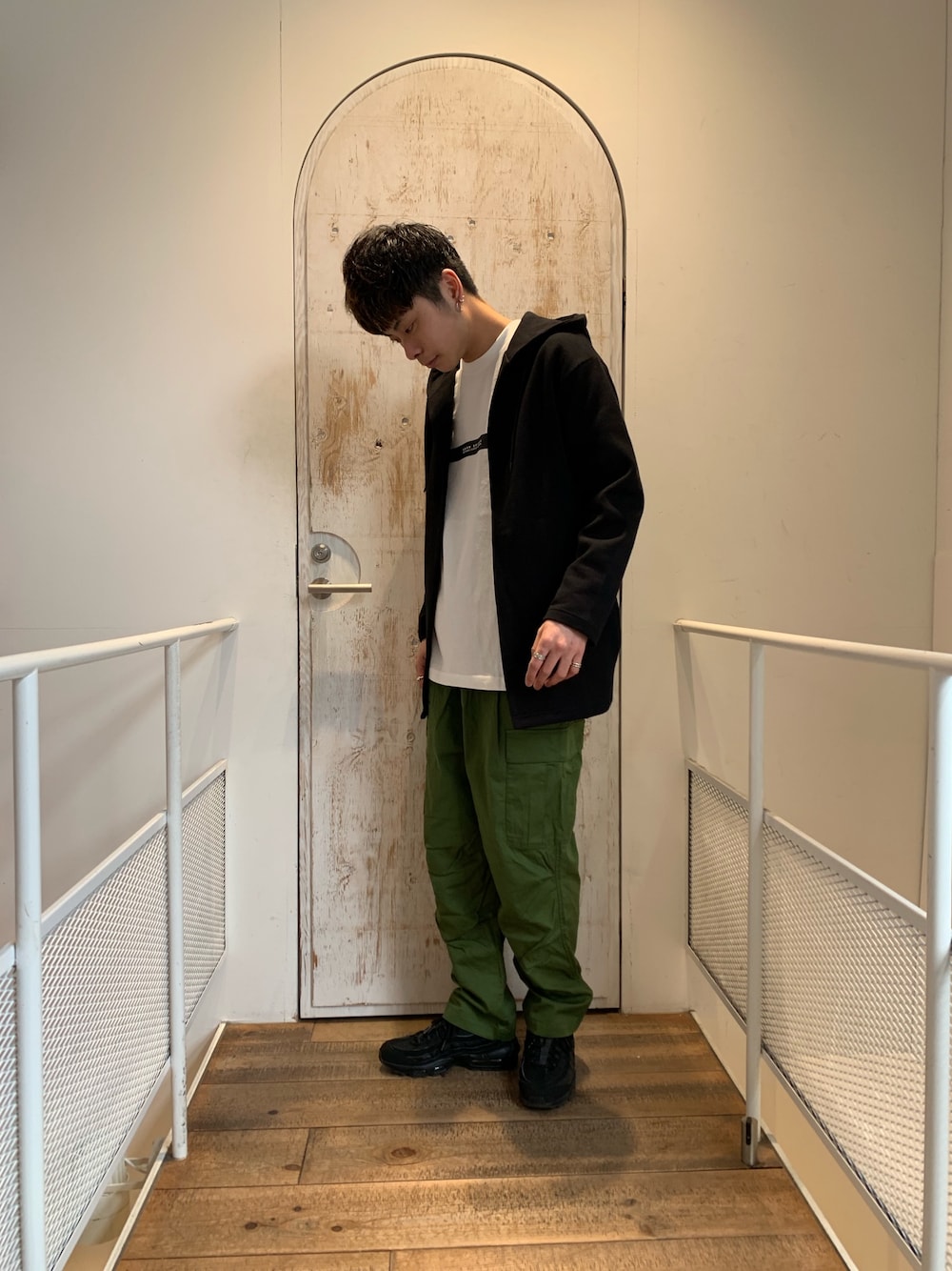 人気のカンゴールコラボを使ったコーデです!!! 全体的に明るく春らしく! 白Tにカーキのカーゴパンツは相性バツグン!!!