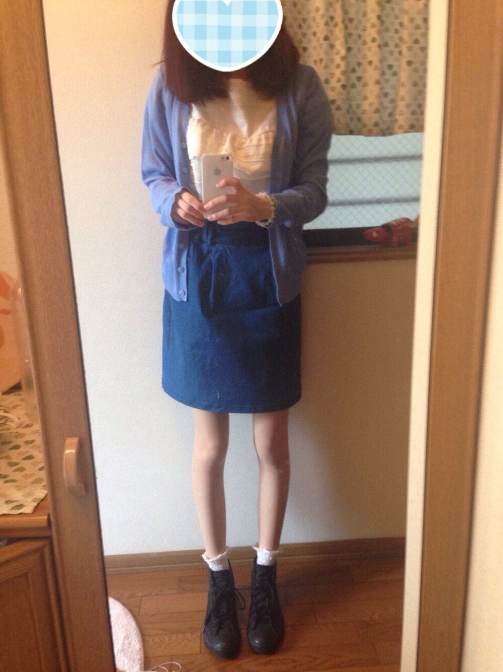 水色大好きな人コーデ♩♩ カーディガン☞通販 デニムスカート☞PARKEast 靴下☞tutuanna