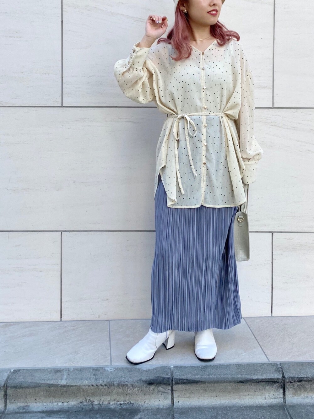 misumiのシャツ/ブラウス「シアードットプリーツチュニックブラウス」を使ったコーディネート