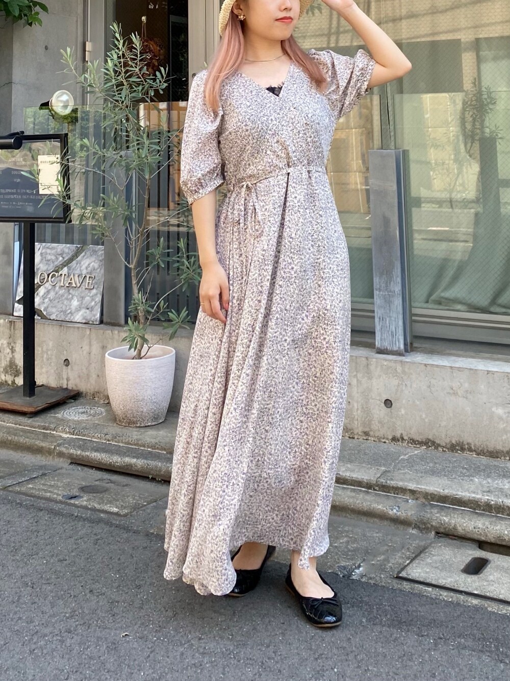 misumiのワンピース「パワショルフラワーワンピース」を使ったコーディネート