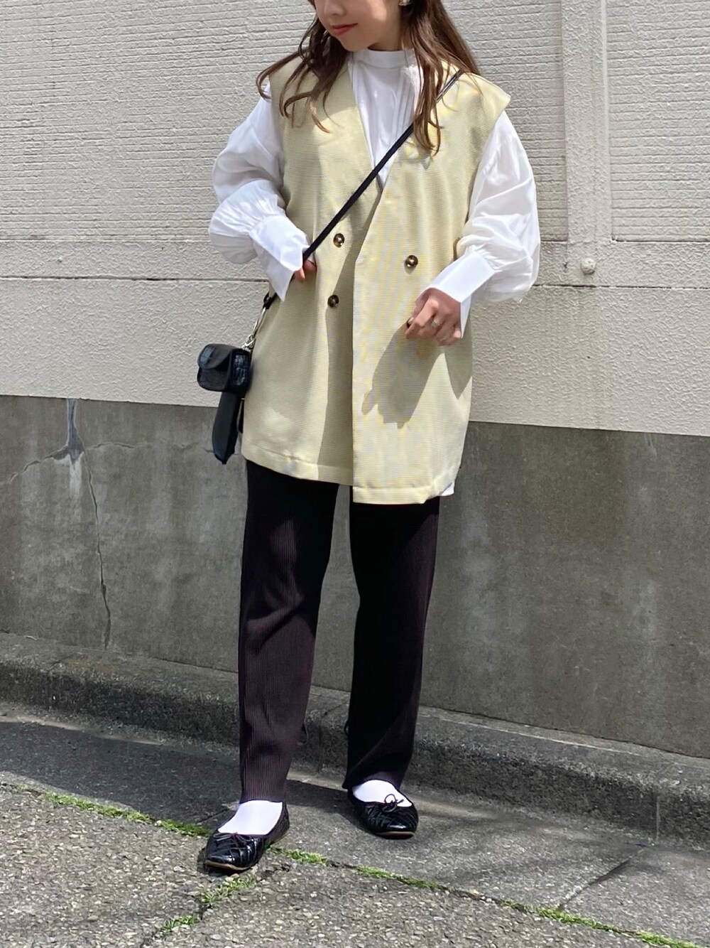 🥿➰🍃 ジレ×ニットパンツでシンプルカジュアルなスタイリングに。 ジレはよく見ると千鳥格子柄! 千鳥格子柄でもグリーンならクラシカルになりすぎず、程よくカジュアルな着こなしが叶います✴︎ いいねやお気に入り、ありがとうございます🙏🏻🤍