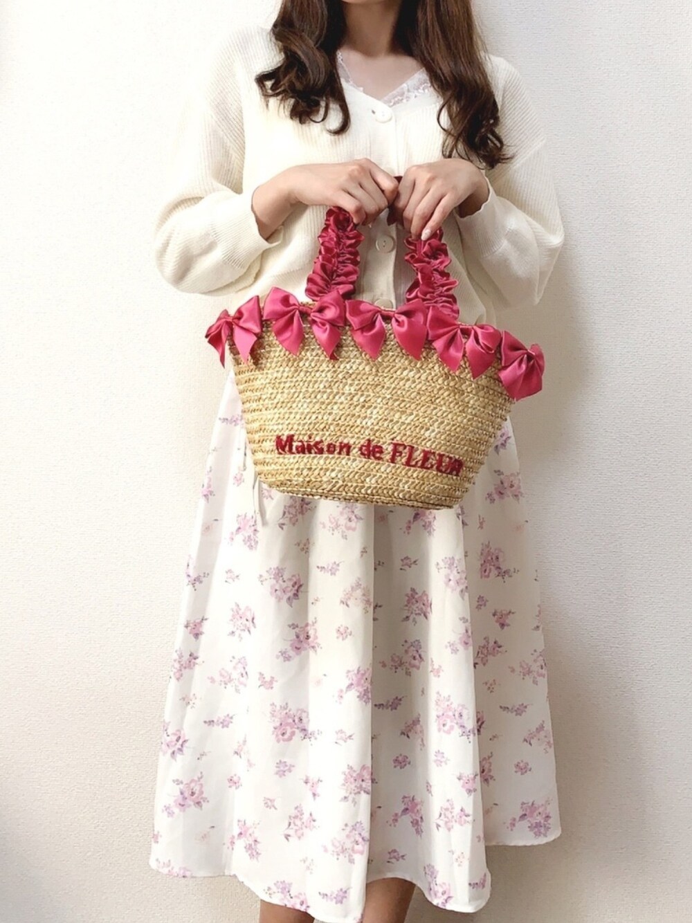 Maison de FLEURのカゴバック🎀 リボン大好きだから、リボンが沢山ついているのが本当に可愛い! カゴバックは去年も買ったけど、去年とはまた違うデザインだからたくさん使い分けしていきたいな🌼