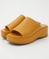 フリルと後ろのリボンがガーリーなデニムワンピース! 高さのあるウェッジサンダルはデニムに映えるイエローカラーに💛