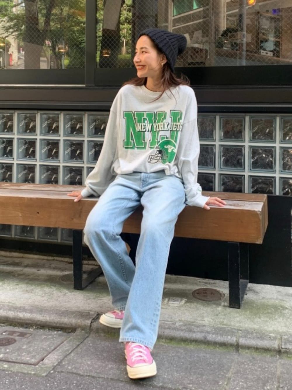 人気のNFLコラボT✨ デニム合わせで思いっきりアメカジ風に🗽 ドロップショルダーなので ゆるっとこなれ感が出るのも◎ カラーごとにロゴの色もデザインも違うので色違いで持ってても良いかも♪