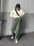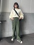 カーキ×アイボリーの外さない色合わせ♡ カーゴパンツはストレートでも、裾のボタンを内側にして裾を絞ったような感じでも穿けるので、靴に合わせてかえてみてね😉