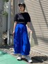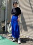 鮮やかなブルーのスカートは これから梅雨の時期にもぴったりな撥水加工のスカート☔️ 他を黒と白で色味を抑えてスカートを主役に✨
