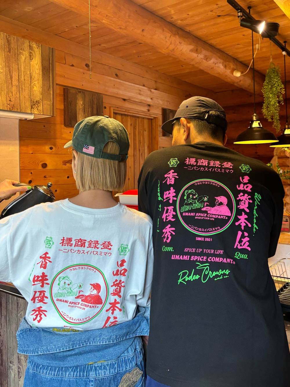 UMAMI SPICEとのコラボTシャツ! チャイニーズ風デザインと配色が際立つプリントにはRODEOのロディくんもいるよ♪ M.Lサイズあるのでリンクコーデも♡