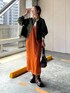 難しそうなオレンジのキャミワンピも相性の良いカーキのミリタリージャケットならバランス◎