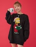 シンプソンズのデザインのニットワンピ✨ クリスマスソングを歌ってる?表情が可愛い♡ 赤いバッグでクリスマスコーデ🎄