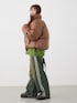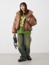 🎈本日限定1,000円オフクーポン配布中! 重たくなりがちな中綿ジャケットはあえてブラウンで✨ ニットも明るめなグリーンでコーデ!