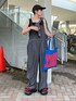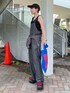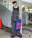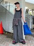 夏でも着やすい接触冷感素材のデニムサロペット✨ シンプルなタンクでコーデしてもサマになるよ! 腰にシャツを巻いてポイントに!室内の冷房対策にも◎