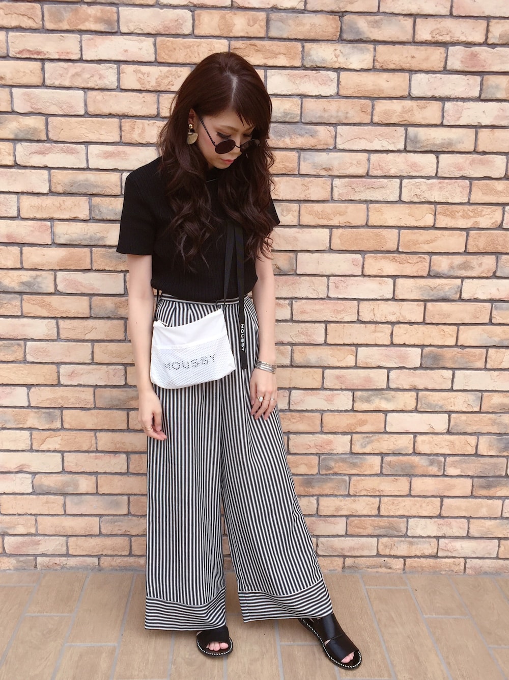 昨日のお出かけコーデ(⁎⁍̴̆Ɛ⁍̴̆⁎) 大好きなママ友と子供達連れてshopping mall♬ ナチュラルクレープ美味しかったぁぁ💕 やっぱり落ち着く❤️リア充❤️❤️大好きっ❤️❤️❤️ コーデはブラックコーデと見せかけてパンツはダークネイビー👖笑 オールmoussy♡ サコッシュお気に入りっ♡♡