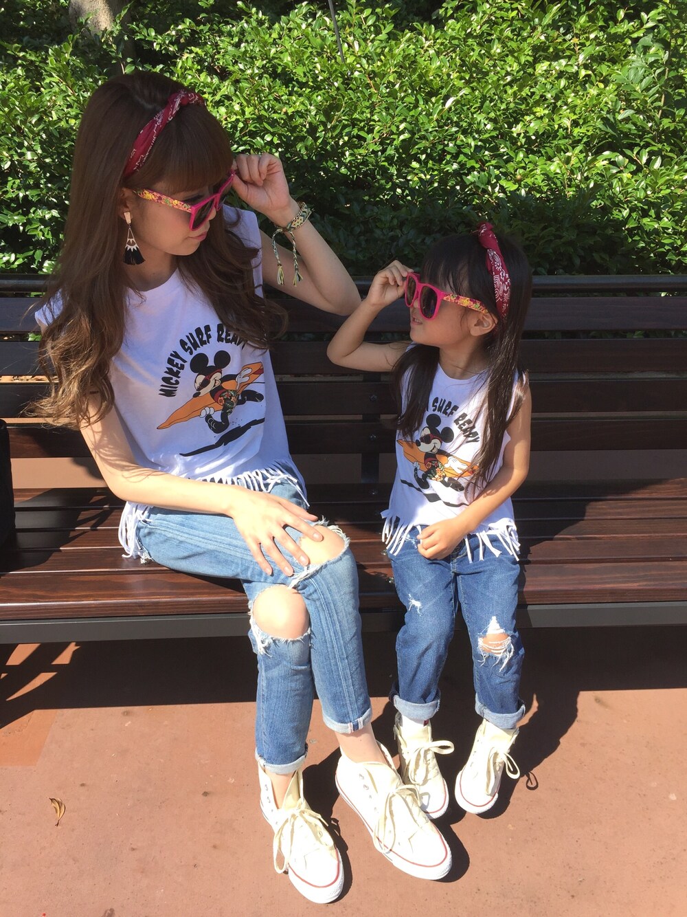 ♡おそろコーデ♡ どうしてもミッキーのトップス着てディズニー行きたかったから似たようなコーデだけどぉ…載せちゃうψ(`∇´)ψ 暑すぎてちょー疲れたけど。。 ランドセルも無事に予約できたし、娘も楽しそうでよかったぁ😋💕 昨日は飲みに行ってたくさん話して楽しくて幸せだったなぁ〜😘❤️❤️