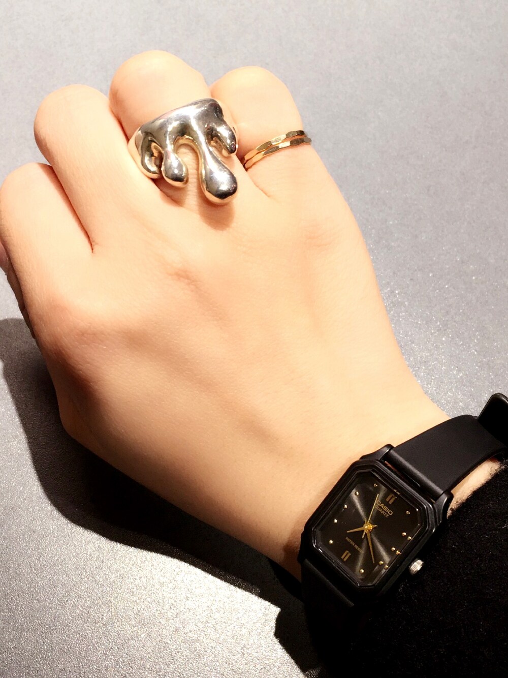 ひよこのアナログ腕時計「【CASIO】アナログスクウェアウォッチ S」を使ったコーディネート