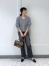170cm/骨格ナチュラル トレンドのグレーでワントーンコーデ。 長めの毛足が魅力的なシャギーニット。一枚でオシャレが叶うのでトレンドライクな着こなし◎ 美脚シルエットのスリットデニムは38サイズを着用。アクセントにレオパードバッグを持って大人カジュアルコーデに仕上げました。