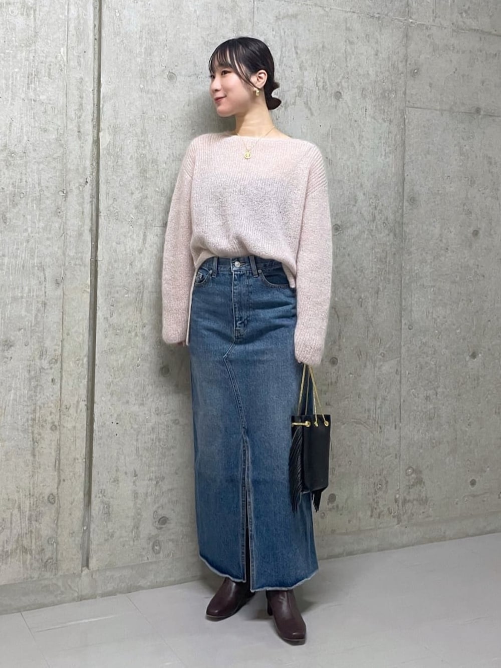 162cm/骨格ウェーブ ⭐︎ニット 大人ピンクでベージュピンクのような色味で 柔らかく、少しラメ感もある大人ニット。 ゆったりしたシルエットで、インナーにロンT合わせも可愛いです! ⭐︎スカート 162cm骨格ウェーブ38着用。 丈感は足首くらいでした。 前スリットで歩きやすさ◎ キレイなAラインシルエットです☺︎