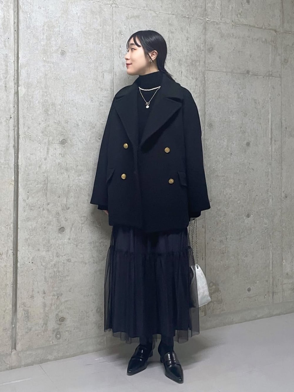 162cm/骨格ウェーブ ⭐︎Pコート 長すぎないバランスいいハーフコート。 金ボタンがトレンドライクで可愛いです。 身幅広めなのでニット着てもごわつかず着れました。 ⭐︎チュールスカート 162cm骨格ウェーブ36着用。 着丈は足首上くらいでした。 軽くてオールシーズン使えそうです。 秋冬はタイツを忍ばせると◎