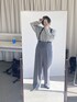161cm/骨格ウェーブ/お尻大きめ 脚長効果抜群のサスペンダーパンツ! 毎年人気のアームウォーマーニットと合わせたグレーコーデ! トレンド感のあるスタイリングを楽しめます!