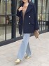 160cm/骨格ウェーブ/細め ●コート 長く愛用したい上質素材のPコート。ゆるさのあるシルエットがお洒落見えに。 ●ニット 薄手のシアーニット。適度な透け感とシンプルシルエットで、大人も着やすいです。ちくちく感なく着用できます。 ●デニム 38サイズ着用。ウエスト、着丈はちょうどよあです。美脚にみえるフレアシルエット。腰回りはややフィット感あります。 ◎トラッドに着るデニムコーデ。Pコート合わせで大人カジュアルに。ゴールドの小物もプラスして華やかさUPに。