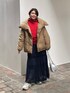 161cm/骨格ウェーブ/お尻大きめ 暖かさもオシャレさも手に入る! スタンドカラーダウン 衿元はボタンを止めてもそのままでも収まりがよく、軽くて暖かさも◎ スカートスタイルにもパンツスタイルにも相性がよく、サッと羽織りやすくなってます! 今回は赤ニットを差し色に♡ 着用アイテム