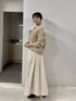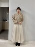 オールホワイトコーデ。 冬のお出かけにおすすめです。 柔らかい生地で着心地のいいニットと、艶のあるスカートは華やかな印象で素敵です。 カーディガンは2wayなのでプルオーバーにもなるデザインです。