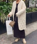 年始のお出かけにもぴったりのワンピースコーデ! ホワイトのキルティングジャケットなら綺麗目にも着れてオンオフ兼用に使えます!