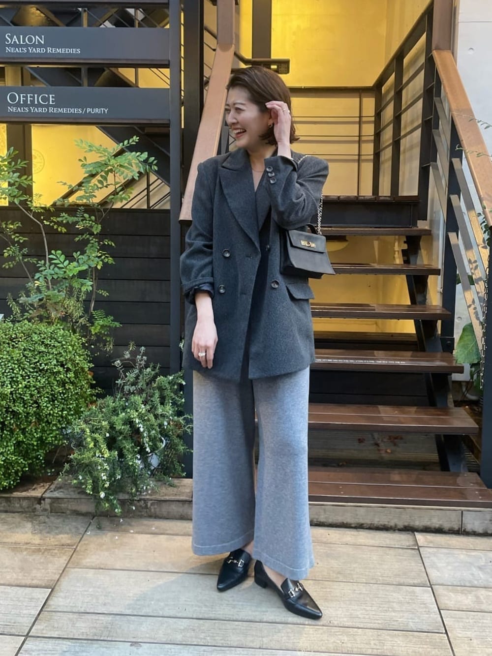 164cm/骨格ウェーブ/腰ハリ ニットサロペットにジャコット合わせのグレーワントーンコーデ。 ニットサロペットは着心地抜群でこのまま横になれそうなくらいリラックスして着用できました。笑 インナーにシャツやロンT合わせも素敵ですが、今回は一枚で着て羽織るスタイリングに。 気になるヒップ周りもカバーしてくれるジャコットは、ジャケット感覚で愛用してます。