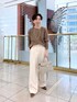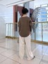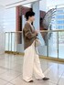 153cm/骨格ストレート お袖のデザインがアームウォーマー風になっているニット。 キレイメカジュアルにワイドパンツと合わせました。