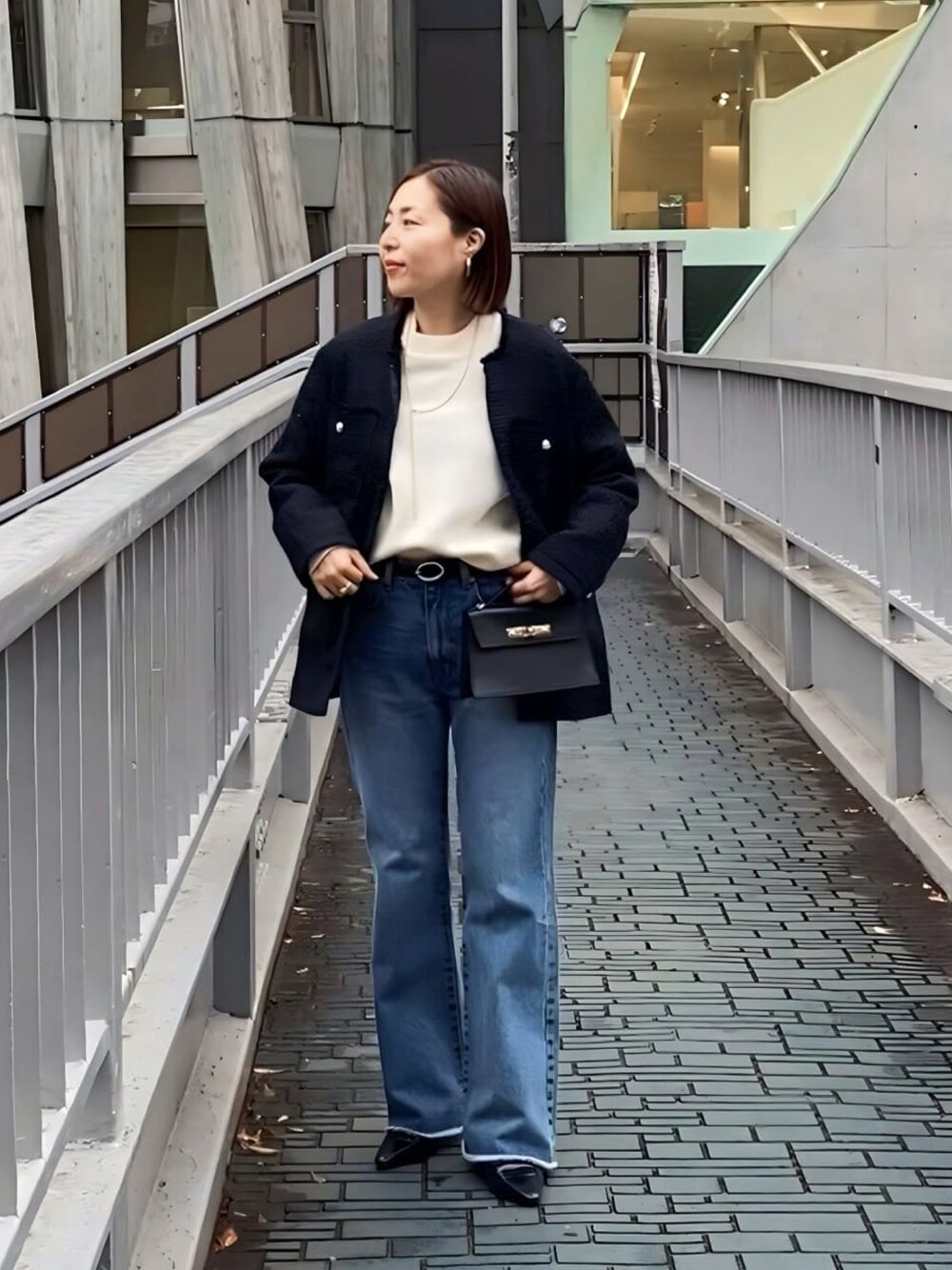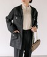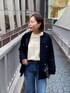 160cm/骨格ウェーブ/細め ●ジャケット オンオフ使いやすいノーカラージャケット。凹凸感の少ないツイード素材はすっきり見えします。軽くて着心地も◎ ●ニット スウェットのような楽な着心地。全体のシルエットも一枚でお洒落に着こなせます。 ●デニム 新色ブルーの38サイズ着用。やや長めのためベルトしています。ジャストサイズは36サイズ。 ◎きれいめカジュアルに着るツイードジャケットスタイル。インナーとデニムで適度にラフに、小物はかっちりめにしました。