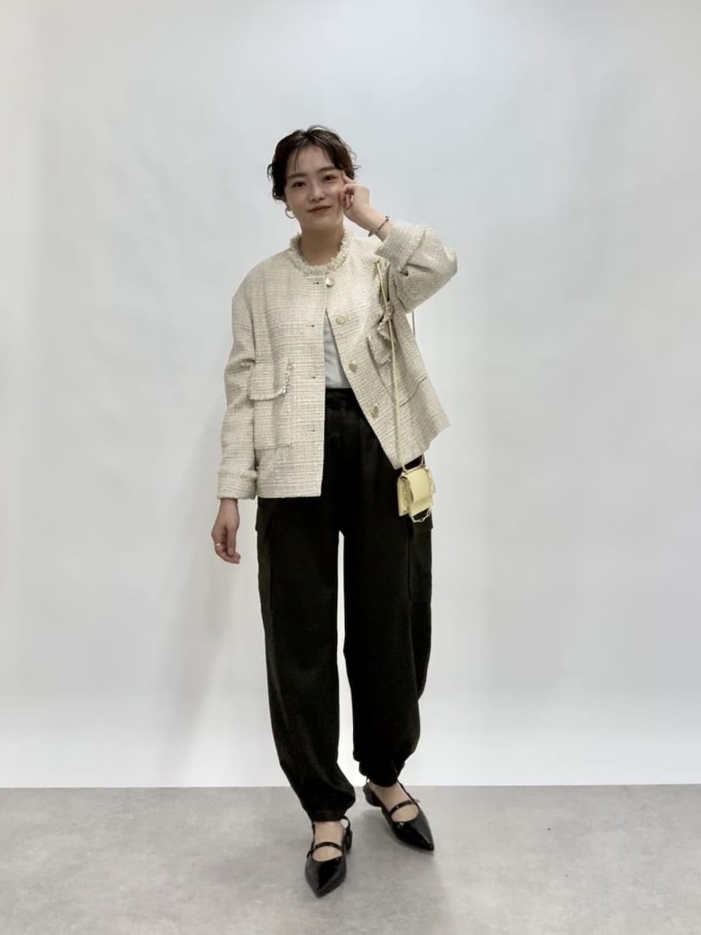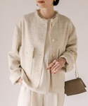 RIVE DROITE official(RIVE DROITE本部)のノーカラージャケット「ツイードミドルジャケット」を使ったコーディネート