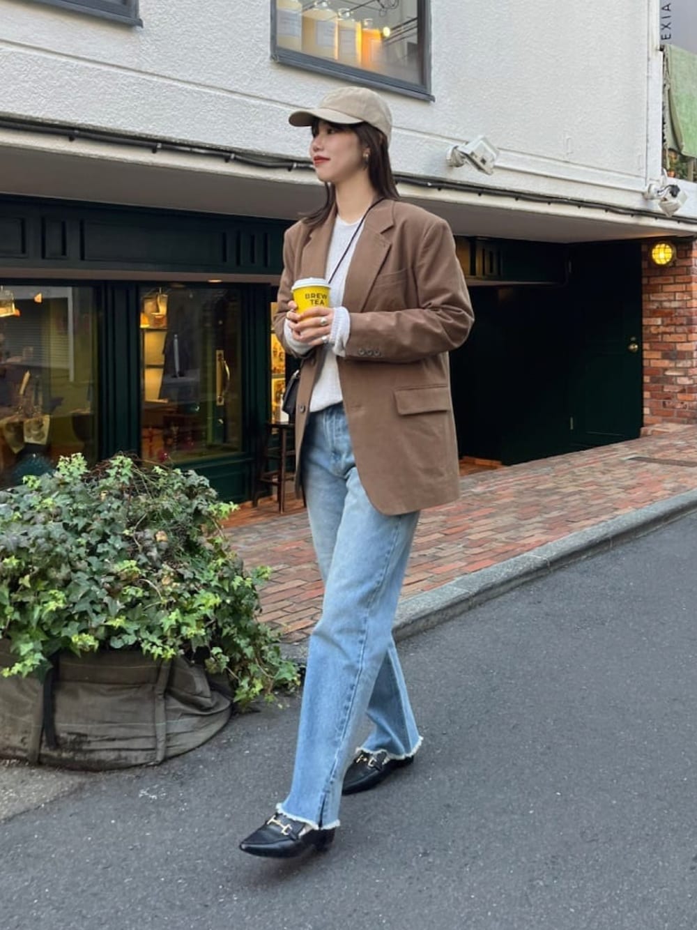 165cm/骨格ナチュラル パンツ40サイズ着用 ジャケット×デニムで春先意識したコーデ。 中にニットを着用していて、今時期はニットの上からご着用頂けます。 デニムがとても美脚に見える優秀デニムです◎