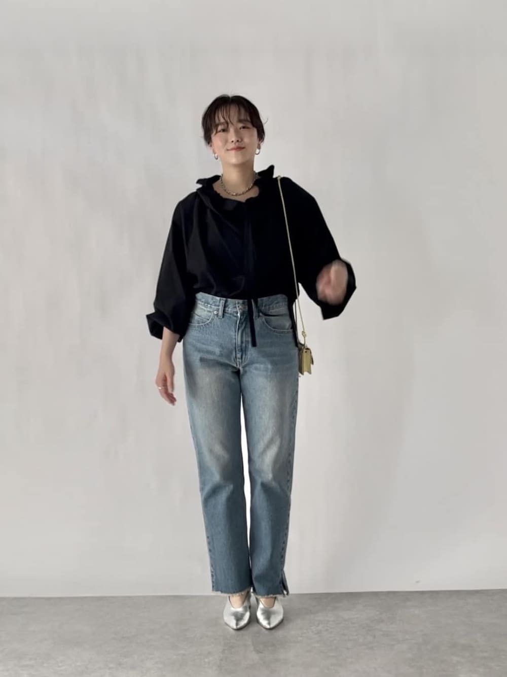 シャツはゆったり目なので甘すぎずラフにもおすすめ。 インしていただくとすっきりとして着ていただけます デニムは38サイズ着用です。 シンプルなのでいろんなコーデにおすすめ。 スッキリしてるのでスタイルアップして見えるのも◎
