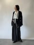 160cm/骨格ウェーブ/細め ネイビーのテーラードジャケットで合わせる、セレモニーコーデ。 フリルブラウスで華やかに。チャコールのワイドパンツで程よいバランスにしました。