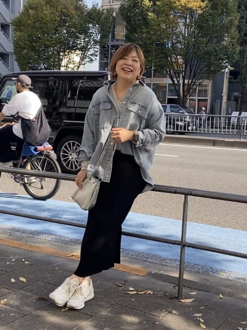 165cm/骨格ストレート/お腹ぽっこり デニムシャツはめっちゃ合わせやすいですっーー! そして、万能痩せ見えタイトスカート! バッチリですっ!!