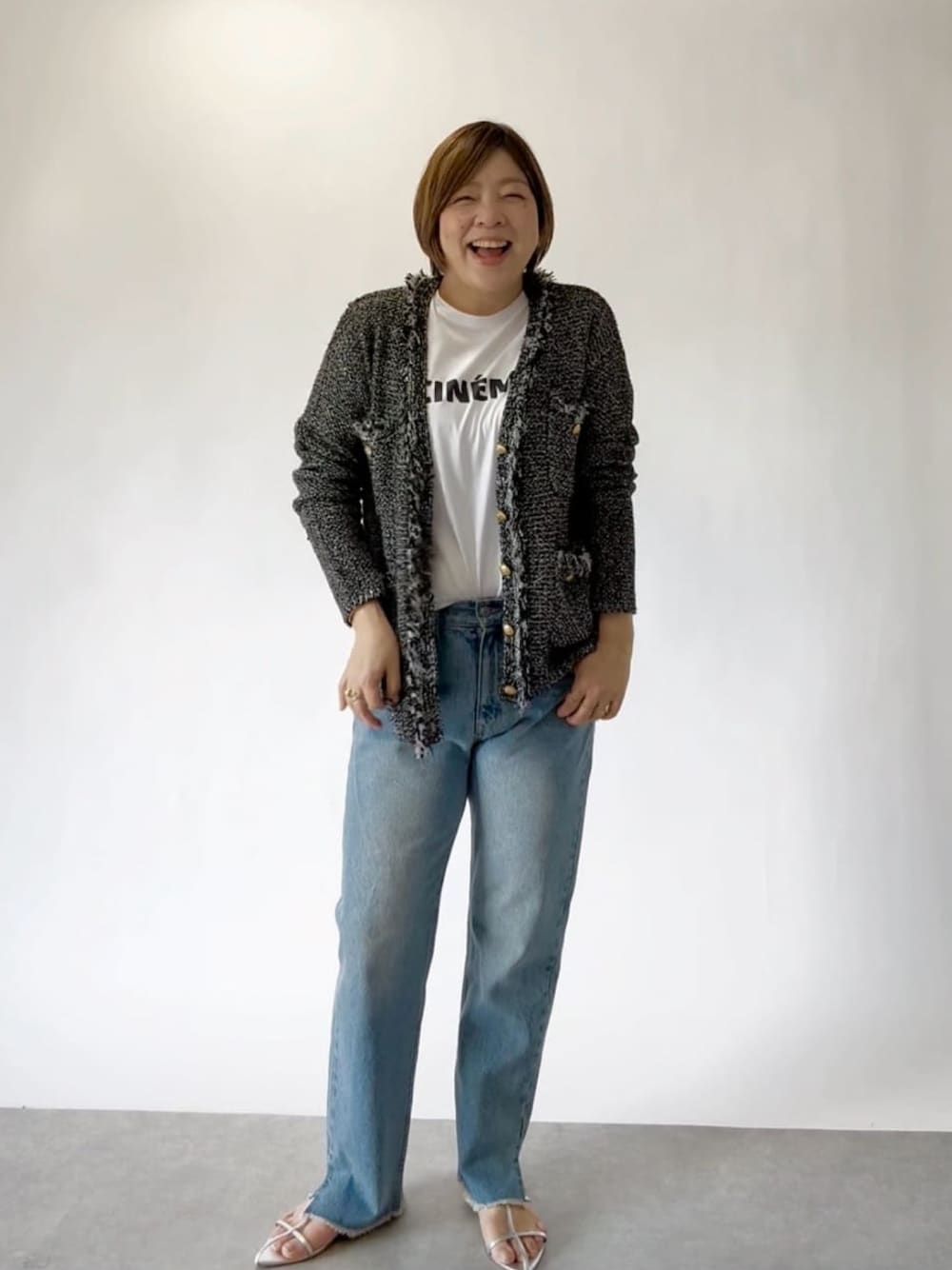 165cm/骨格ストレート/お腹ぽっこり Tシャツコーデ。 カーディガン羽織るだけの シンプルコーデ。笑