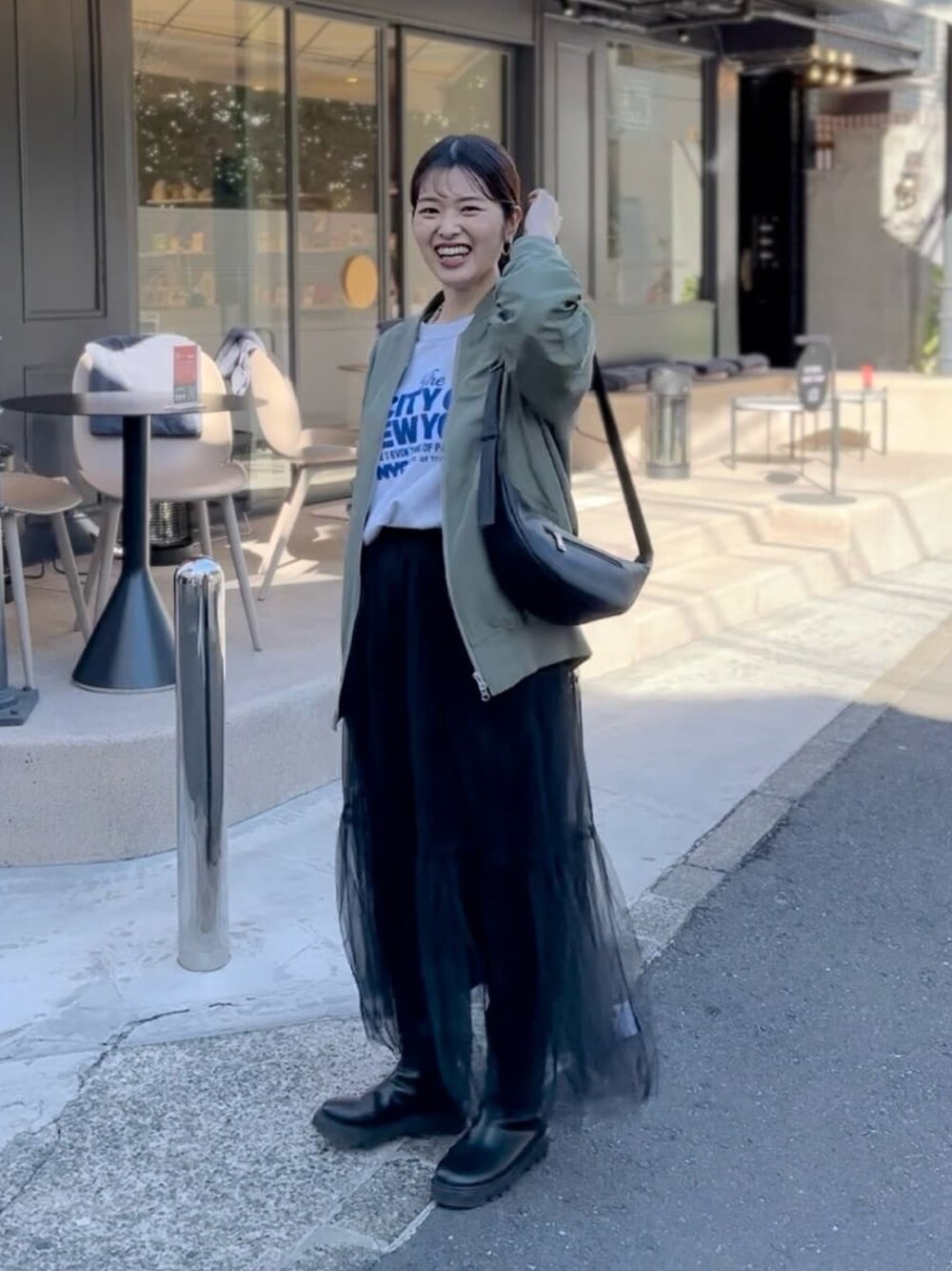 160cm/骨格ウェーブ ロゴスウェットで大人カジュアルスタイル。 ブルーのロゴがコーディネートのポイントに! ボリュームたっぷりのチュールスカートと合わせて女性らしさも忘れずにプラス♡ 春の軽羽織におすすめのMA-1。 スカートスタイルにもパンツスタイルにも合わせやすく、着回し力抜群です。