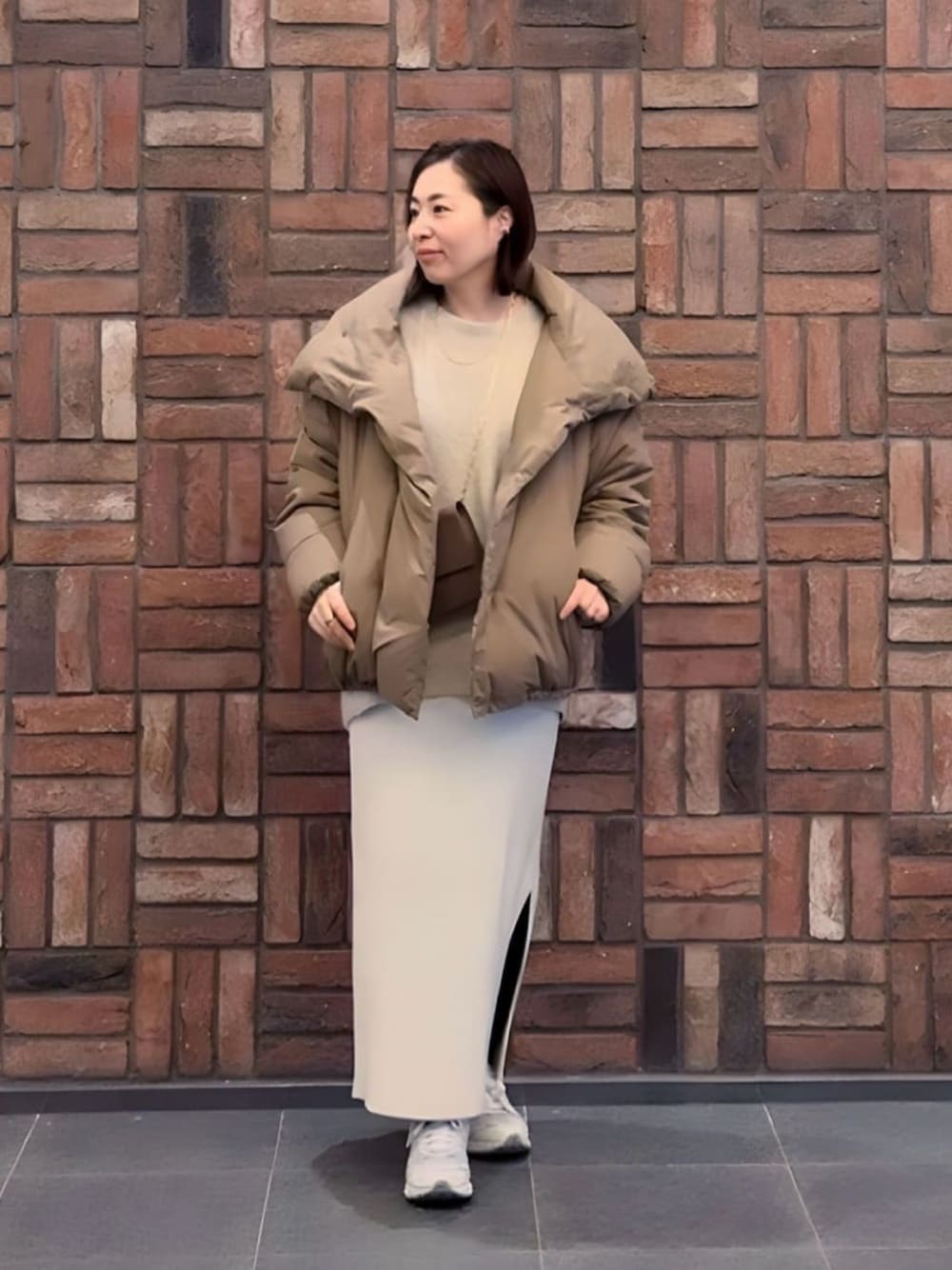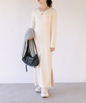 160cm/骨格ウェーブ/細め ●ダウン 丸みのあるフォルムと軽さのある着心地が楽ちんです。暖かくておしゃれに着れるダウンです。 ●ワンピ 人気ワンピのニット素材、体型カバーできて安心なシルエット。お出かけや旅行にも便利。 ◎ニットワンピ×ダウンのベージュコーデ。ニットを重ねて暖かく。ショルダーバッグはモカをポイントにしました。